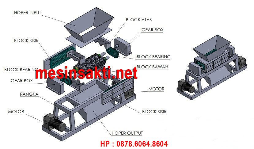 Namun seiring dengan meningkatnya permintaan masyarakat yang menginginkan agar mesin shredder kami dilengkapi dengan 2 penggerak , maka desain mesin ini kami rubah menjadi 2 penggerak .