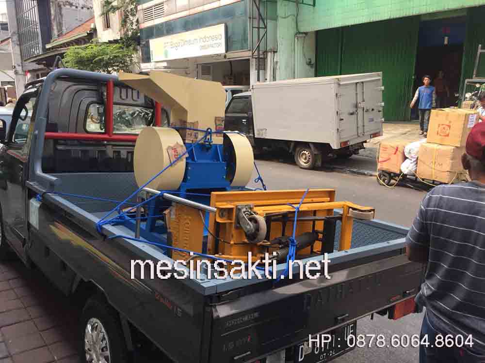 Mesin yang sudah naik dalam mobil pick up ini rencananya akan kami kirim ke daerah Indramayu . Mesin ini juga sama akan digunakan untuk menghancurkan aneka macam material yang terbuat dari bahan kaca .